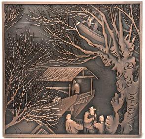 材質(zhì):H62銅或T2銅,厚度10—15mm尺寸:客戶實際尺寸定制制作工藝:整板雕刻,打磨,拉絲,拋光 ..